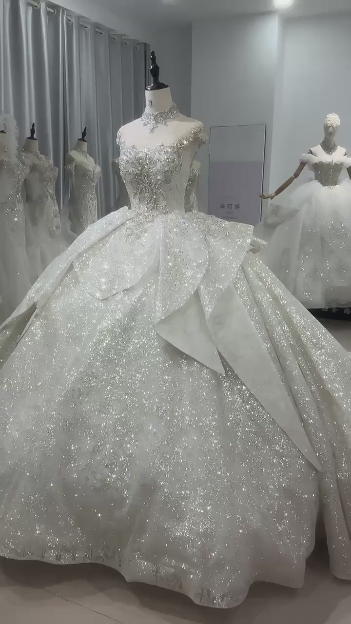 TW161 Vestido Casamento 2025 Cap Sleeve O-Neck Lace Up Back Wedding Dress Beading Sequined Star Crystal Ball Gown Luxury Bridal Dress