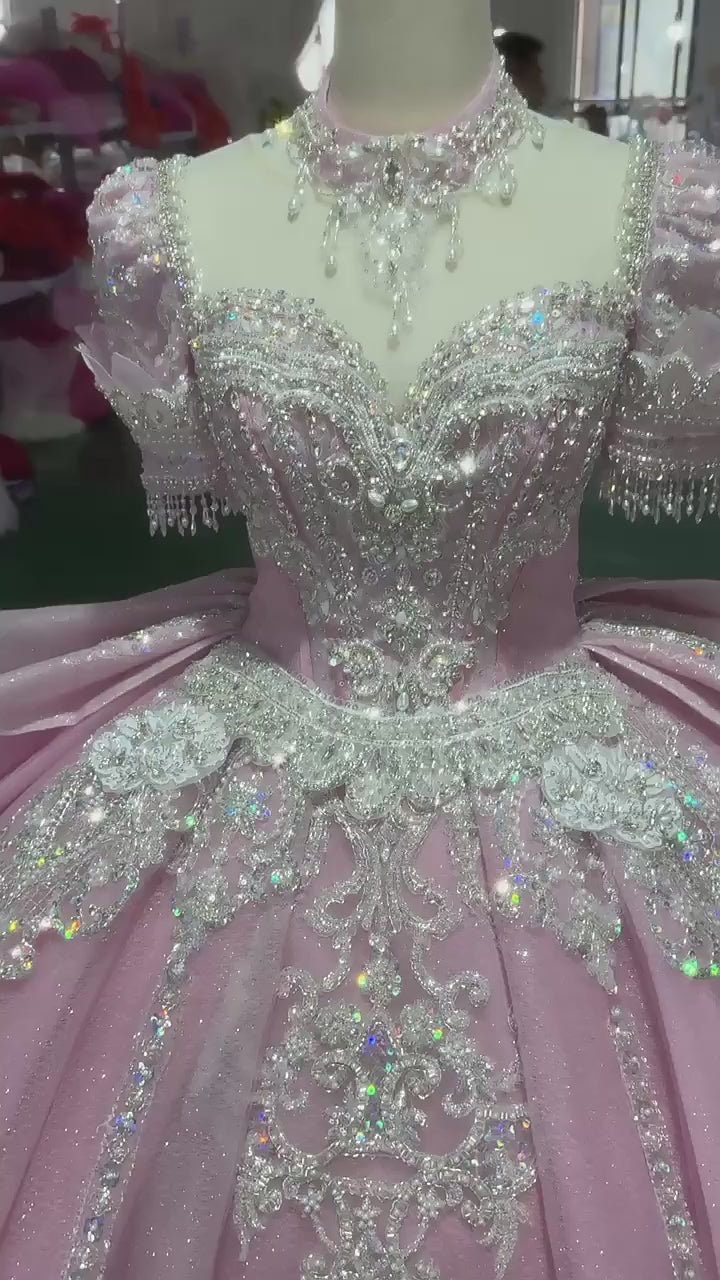 TW252 Women Evening Dresses Short Sleeve O-Neck Crystal Embroidery Beaded Keyhole Back Pink Long Dresses For Special Occasions