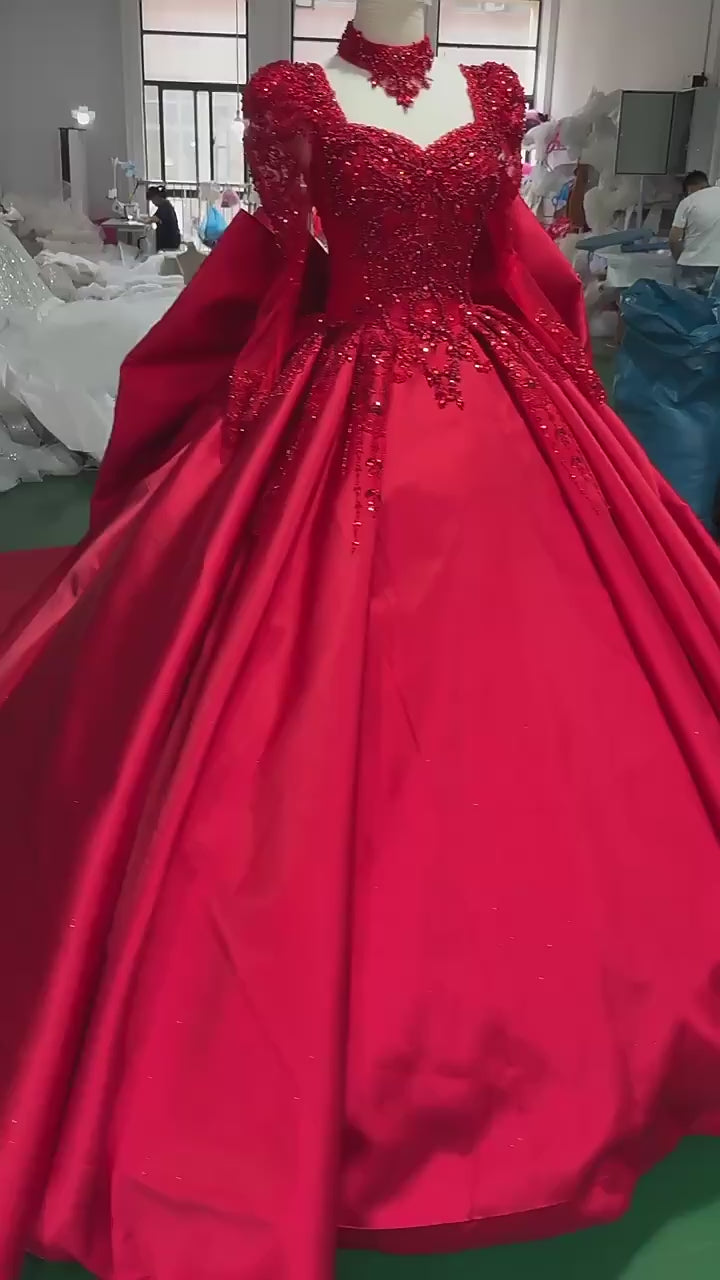 TW261 Robe De Soiree Sweetheart Long Sleeve Lace Up Back Luxury Evening Dress Bow Crystal Embroidery Beading Red Long Dress Customized